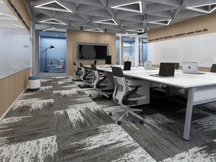 For creative office interiors, carpet tiles offer greater design flexibility.